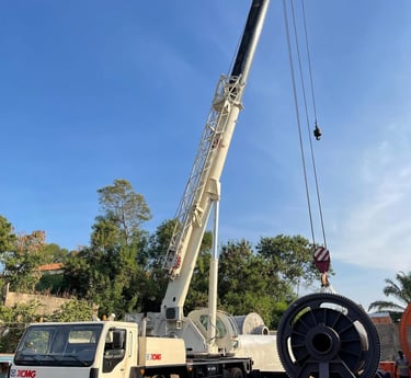 Com uma frota moderna, incluindo guindastes XCMG de 50 toneladas e Sany de 80 toneladas, a empresa garante eficiência, precisão e segurança em todos os projetos.