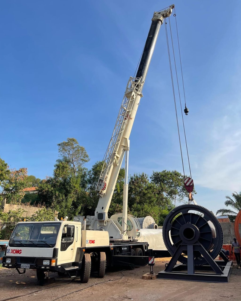 Trabalhamos com guindastes XCMG de 50 toneladas e SANY de 80 toneladas.